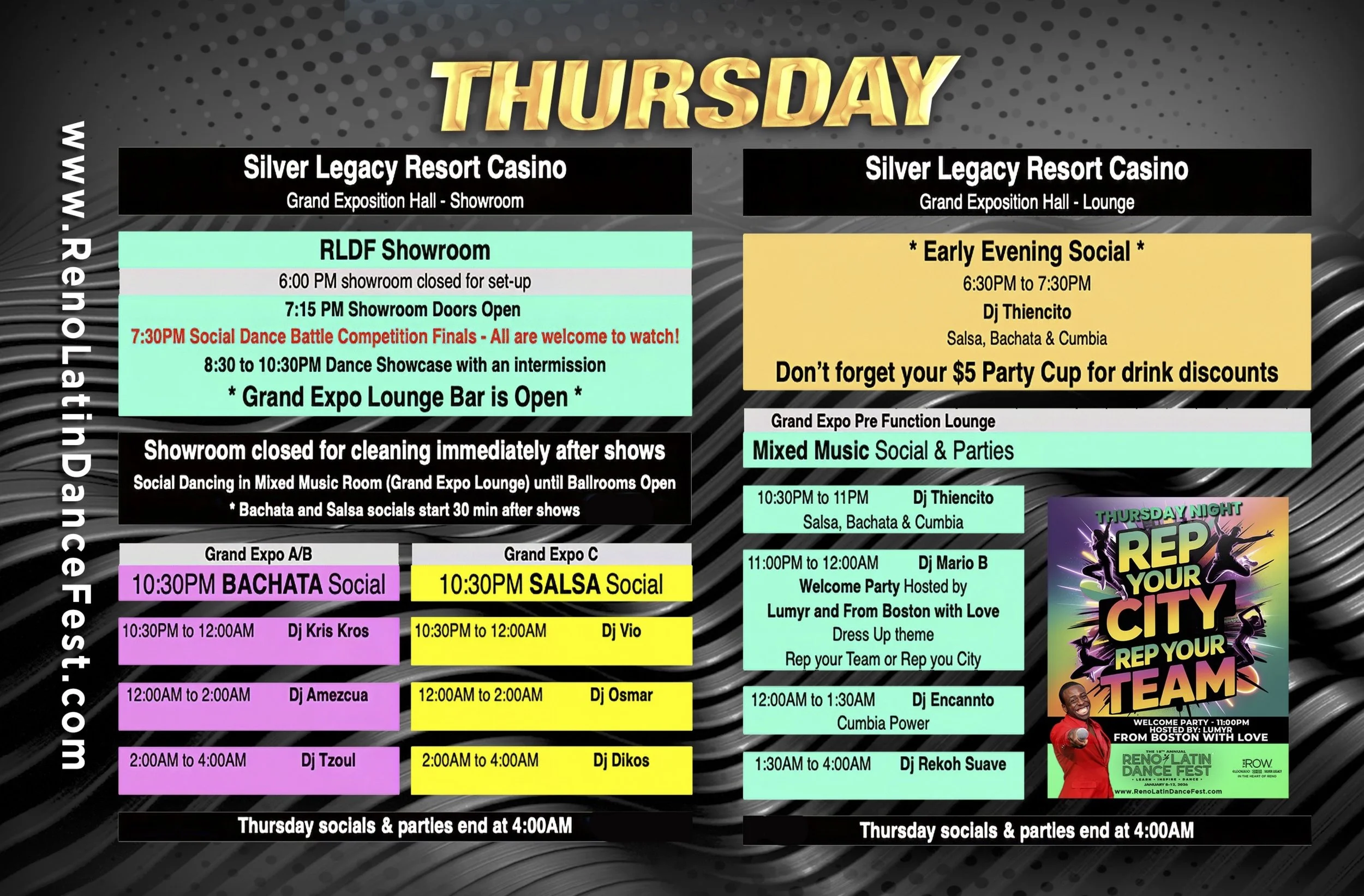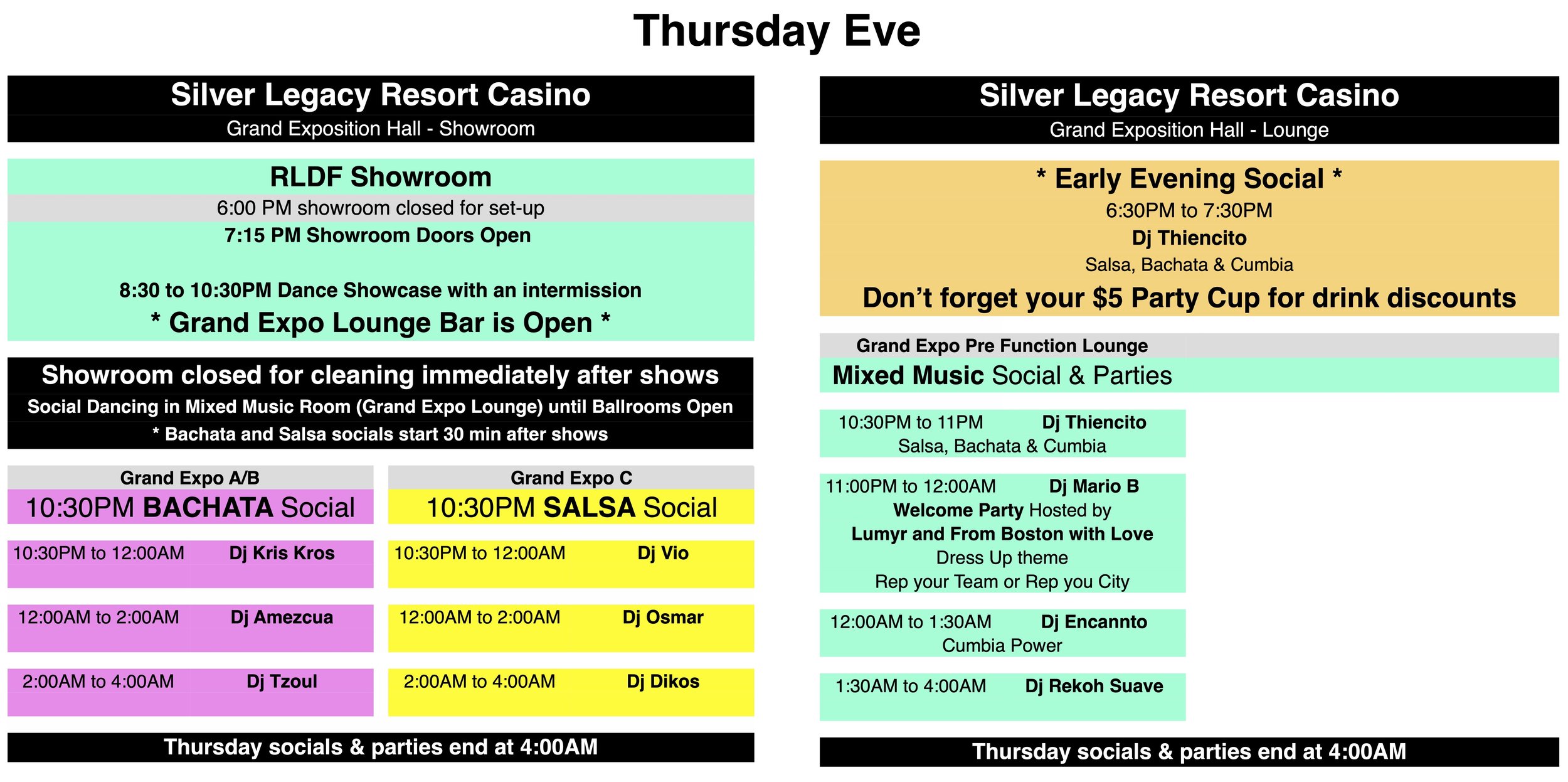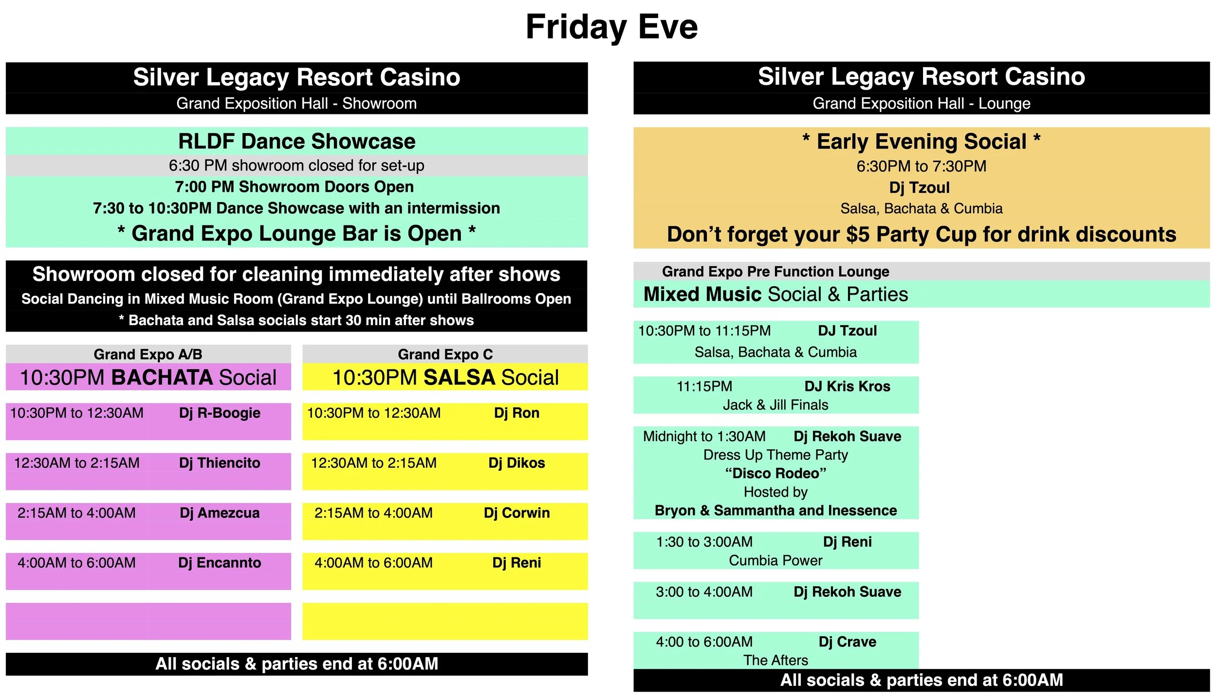 Includes the Afternoon Socials plus all shows and evening social dancing/parties.